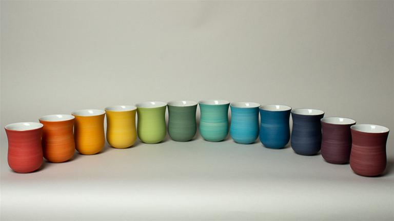 12 Stück, Steinzeug, handgedreht, spülmaschinengeeignet